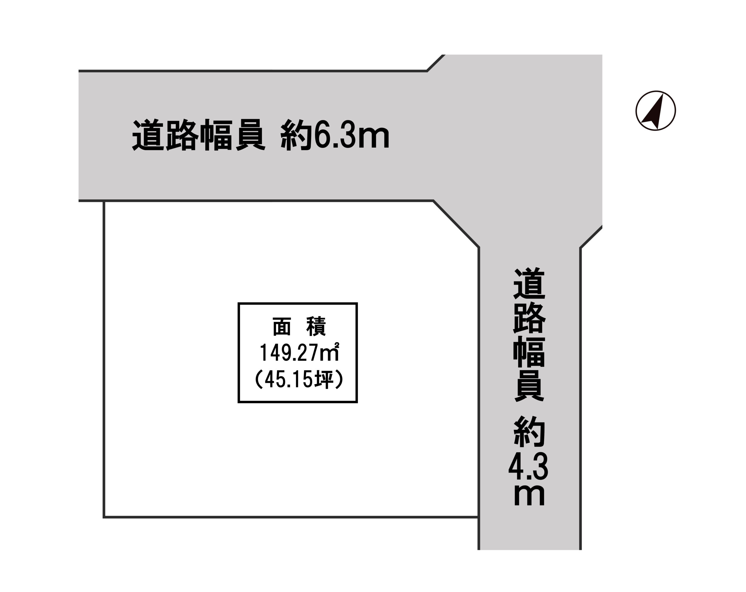 ■ 接 道 /道路幅員 北 約6.3m・東 約4.3m(公道)